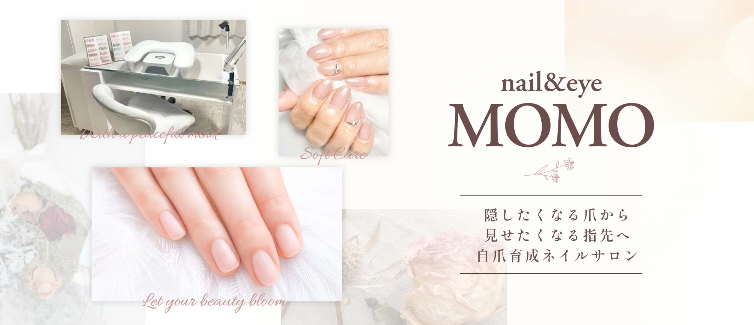 nail & eye MOMO(ネイルアンドアイ モモ) は、深爪・噛み癖・爪の形にお悩みの方に寄り添う 自爪育成専門サロン です。
